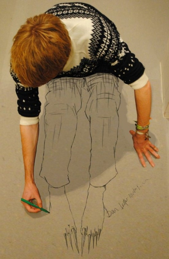 Dan Lester 在牆壁上畫自己,卻被畫中的人物給掐住脖子?這可不是驚悚片的電影海報,而是 Dan Lester 最滿意的作品之一。畫畫不難,攝影也不難,但能想到將兩者這麼巧妙的結合在一起,Dan Lester可是第一人!