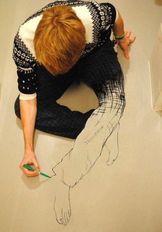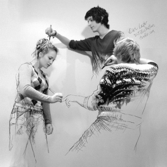 除了自畫像,Dan Lester也邀請三五好友一起融入畫作,為這幅作品(Drawing on life)整體營造出更上一層的詭譎感。這樣有趣的插畫作品正說明了在資訊爆炸的時代,只要有想法、夠創新,人人都能夠將自己的嘔心瀝血之作與這個世界分享!