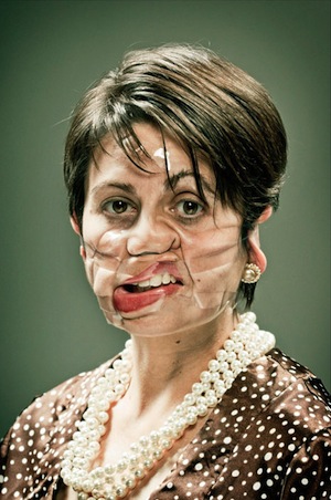 這些照片看起來就像絲襪套頭或是強風吹臉的懲罰遊戲一樣,扭曲變形的五官、糾結緊繃的皮膚堪稱最成功的鬼臉,而且還有點畢卡索名畫的神韻呢~或許畢卡索也跟朋友玩這個遊戲也說不一定(誤)。