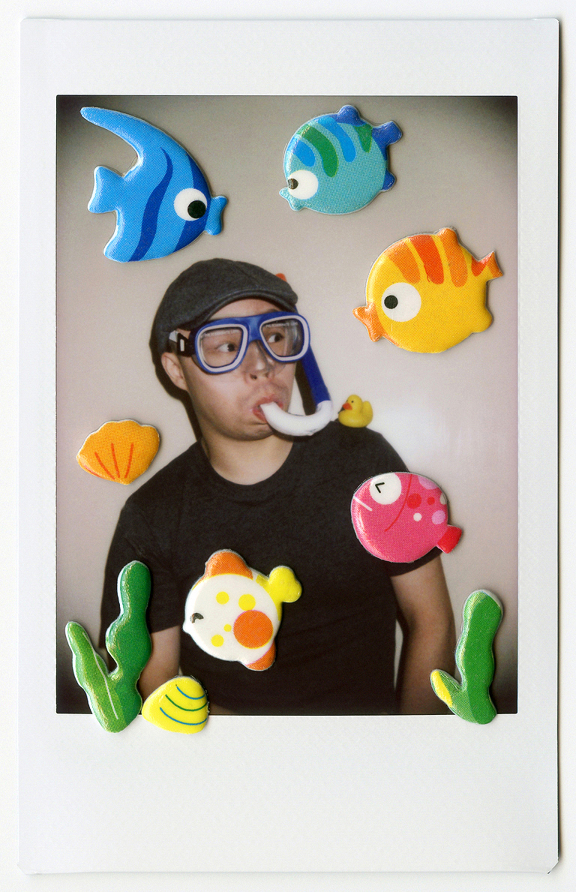 或者也可以試著在家裏翻箱倒櫃看看,找到一副眼鏡、蝴蝶結、塑膠鴨,然後就拍出這張照片 …