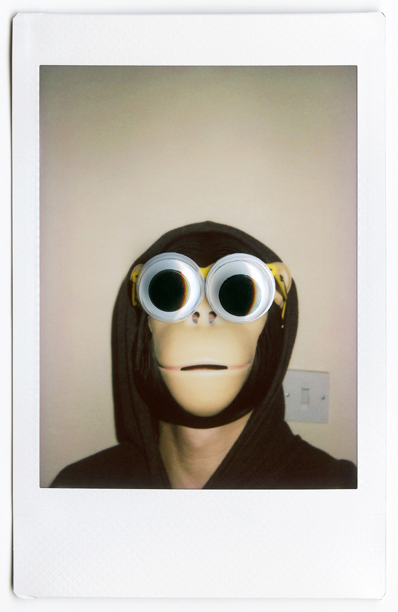 對於那些面對鏡頭會不自在的人,也有一個解決方法:你就戴上面具吧!猴子面具、兔子面具,或是任何可以蓋住你整個臉的面具都可以 :)