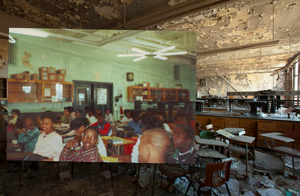 拍攝地點為底特律的 Lewis Cass Technical High School,這所高中在 2007 年的一場大火後被廢棄,不過這些舊照片還是稍稍帶回了一些回憶與活力,當年曾在此就讀的人們,如果看到這些照片一定會有很深的感觸,或許哪天你也可以帶著你手邊的舊照片,回到小時候就讀過的所有學校去尋找拍照的地點,一定也會勾起不少回憶!