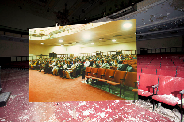 照片來自美國網站 Detroiturbex.com,他們專門拍攝底特律城的各種廢棄建築物與場地。在美國所有大城的人口發展中,底特律城是唯一在這百年之間經歷大起大落的城市,人口高度增加再快速萎縮的結果,造就許多廢棄的公共設施與建築,包括房屋(甚至整個社區)、學校、公園甚至是教堂,這些廢建築不僅則成為縱火的目標,連帶也是一種資源浪費,Detroiturbex.com 希望可以藉由這些照片來引起社會關注,讓底特律公權可以趕快為此作點改變,雖然議題有些沈重,不過他們新釋出的這組照片卻有些許不同,藉由後製合成的手法,彷彿在廢棄空間中開出一道時光裂痕,讓人們看到過去的活動軌跡,帶來更大的視覺震撼度。