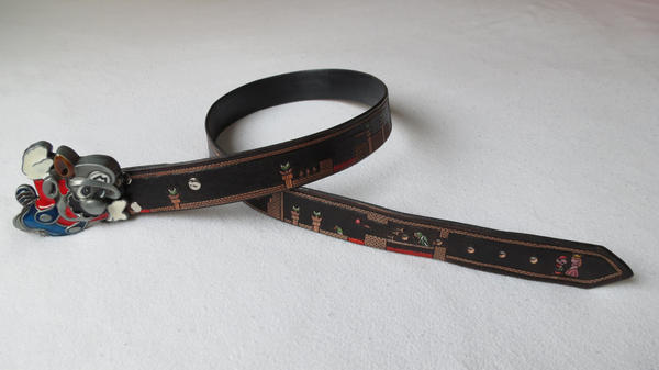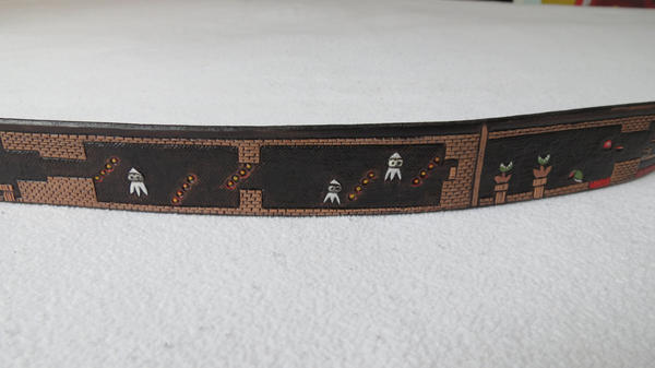 現在的超級瑪莉已經進化到一個不可思議的境界,不過老實說,我們最懷念的還是任天堂紅白機時代的版本,或許 Julia 也有這樣的想法,特地花了一個月的時間,打造這條皮帶送她超愛玩瑪莉兄弟遊戲的哥哥,所有細節都是一筆一刀慢慢刻出來的,包括食人花、牆上的磚塊、熔岩以及老是很礙眼的火球,當然最重要的蜜桃小公主也好好地待在皮帶的尾端等著瑪莉大叔,小時候玩遊戲的緊張氣氛似乎又上心頭,實在很想立刻奔回家開機再重溫那種感動呢!