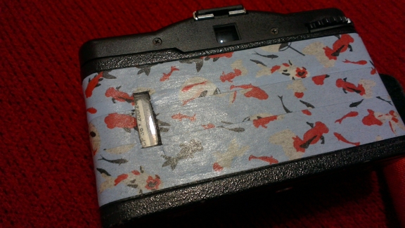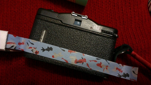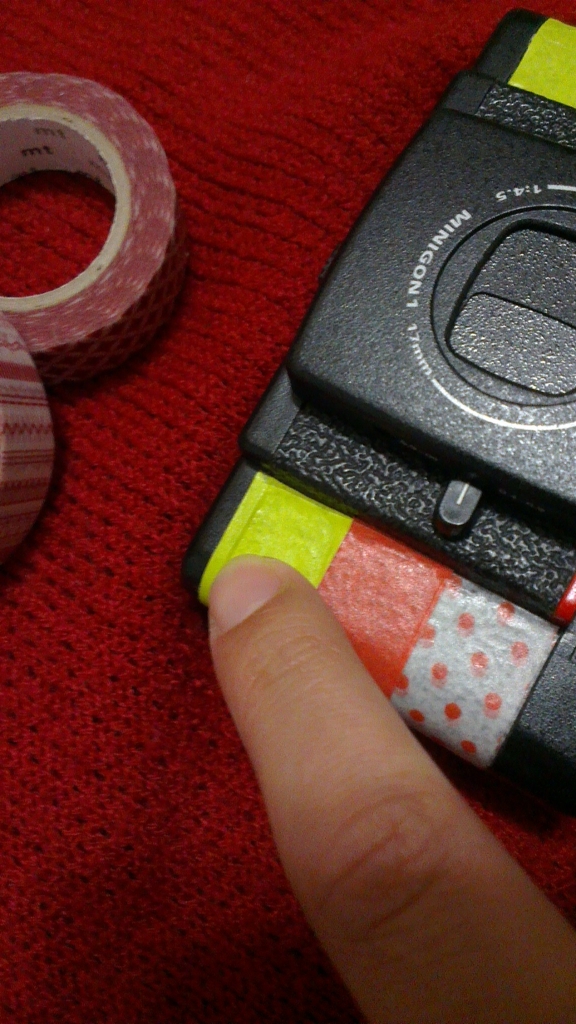 脫掉髒衣服,還它本來的面貌。但是,失策的是布膠帶的黏性較高,脫掉後,相機表面有點黏黏的。接著,準備為它換上新衣吧!