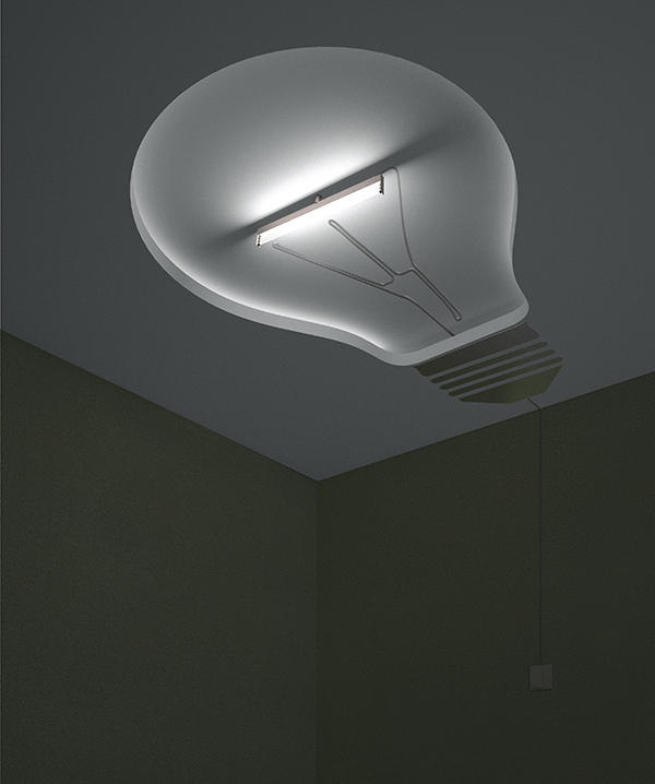如果哪天回到家中發現天花板多了一顆巨大的平面燈泡,會不會大吃一驚呢?而這樣的造型設計,也不禁讓人好奇,既然中間已經有長柱型燈管,又為何要多一顆燈泡呢?