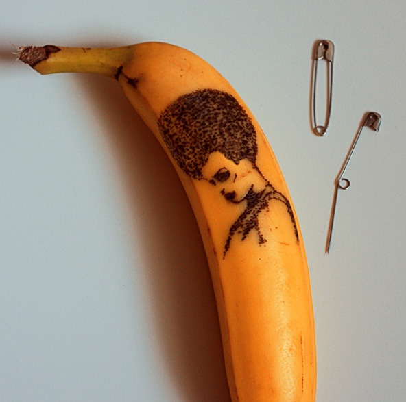 旅居美國的菲律賓藝術家Honey以香蕉作為畫布,利用一根簡單的別針或圖釘在香蕉表皮刺上圖案,跟一般的刺青藝術的概念相同,只是這回五顏六色的顏料換成了香蕉與生俱來的氧化酵素。刺青完的香蕉只需要等待二十至三十分鐘,圖案就會清楚的浮現出來,算是相當簡易又白爛有創意的藝術表現手法。