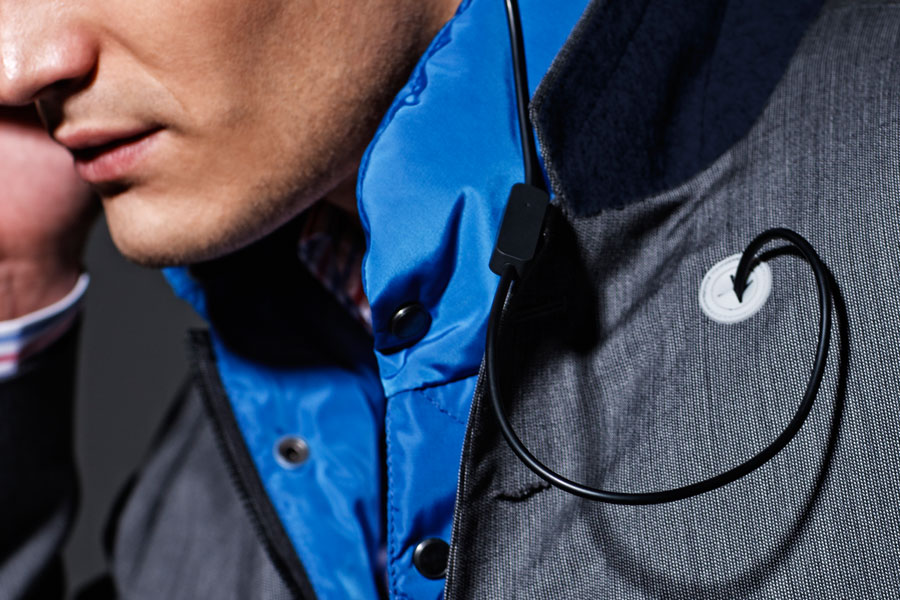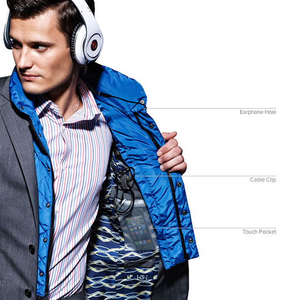 這套西裝是專門為了應付各種惡劣天氣所設計出來的,在西裝的表布上設計了一層奈米層,也就是這一層讓西裝完全防水、防髒、防皺還可以不吸付臭味,在外套的裡層也配備有完全防水的夾層,讓你心愛的智慧型手機可以妥當的安置在那裏;在領子的下層,配備有一個耳機孔,讓你聽音樂於無形,帥勁絲毫不減。