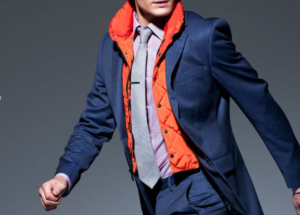 而我們在圖上看到的橘色內層,主要是一塊小小的類似領巾的設計,放置在西裝的前面,用最時尚的方式保護你容易受寒的脖子和前胸,輕量設計不增加負擔,也不會因為多了一層而感覺整個人大了一圈,只能說這儼然就是現實版的帥哥西裝阿!