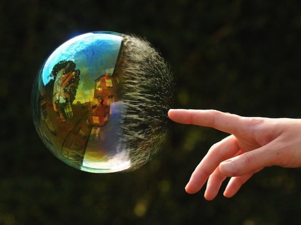 Heeks 同時也開始學習更高難度的泡中泡技巧,利用特製的針頭刺入大泡泡中吹出第二個,甚至是第三個泡泡,經過相機鏡頭的記錄讓這些技術更有可看性與藝術性。還有別忘了泡泡容易破滅的特質,巧妙安排手指一戳,快狠準的將瞬間畫面留下,堪稱是泡泡攝影的最高境界啊~看到如此夢幻的攝影集後,可別再說肥皂泡泡是小孩子的遊戲,或許大家也可以開始研究哪些小時候的遊戲可以發展出全新的藝術型態呢~
