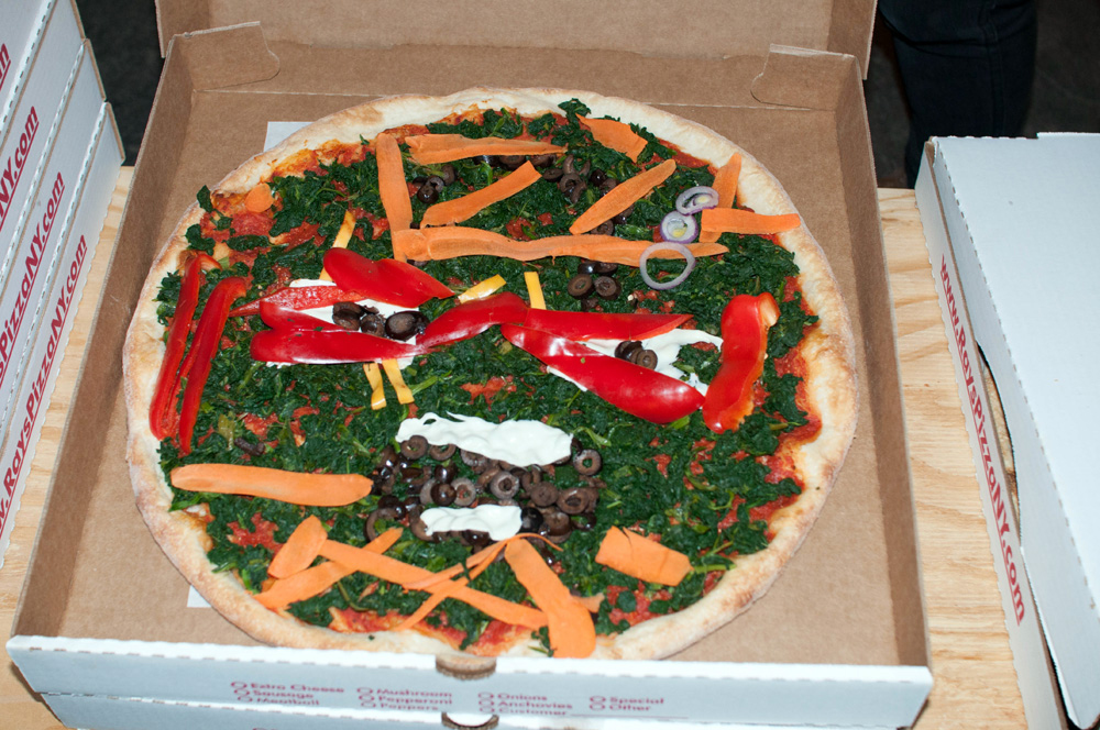 Ray's Pizza 提供了專屬的線上創作網站 Paint Your Pizza,點選顏料在中間的大圈圈塗鴉後,就會收到一模一樣圖案的披薩。背後的操作邏輯也不難猜,吃過披薩的人應該都可以隱約猜到,網頁上的每個顏色都代表了不同的食材,例如紅色可能會用上番茄、紅椒,而黑色則會用黑橄欖,所以不管你再怎麼鬼畫符,Ray's Pizza 都能不負所託地將你的神之大作送到你手裡,非常適合派對炒氣氛用!