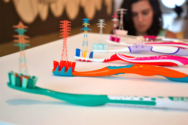 來自日本藝術家 Takahiro Iwasaki 的系列作品,他以"線條"為元素陸續創作出許多超扯的雕塑品,而這些線條的來源正是取自於日常生活常見的物品,例如毛巾的線、牙刷刷毛,電氣膠帶,甚至是人的頭髮...