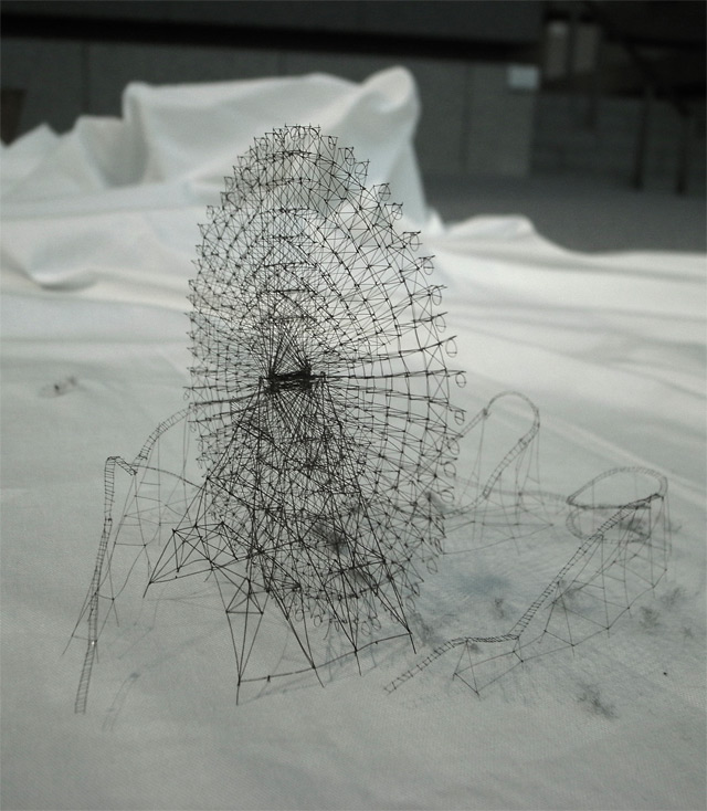 這座用毛髮編成的小小遊樂園,分別是一座摩天輪和雲霄飛車,整體高度應該不滿15公分,線條卻細到令人發麻,要用軟呼呼的頭髮編造這個作品,想必製作過程應該相當痛苦吧!