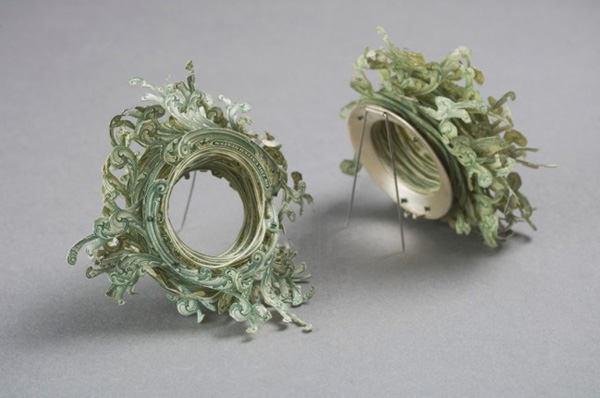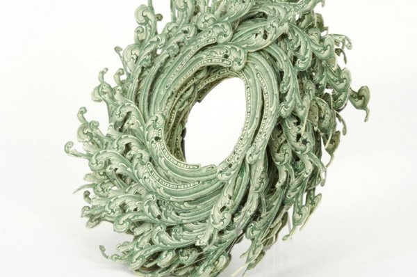 該設計師將許多一美金的鈔票,將上面的花樣精細地切割下來後,一層一層組裝起來,透過排列和特殊手法處理之後,就成了奇妙圖案的裝飾別針,她認為,在當今社會中對於裝飾的概念已經不像以往單純,很多人會因為自己穿了什麼而有不同的自我感受,而這款鈔票裝飾品,似乎也會帶動穿著的人另一面心理情緒。
