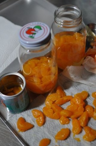 果肉分瓣後做成橘子罐頭保存