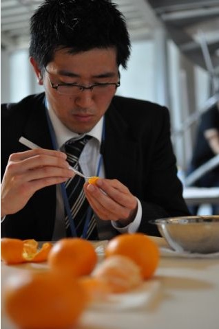 當然免不了的手工作業(穿西裝撥橘子,難道廣告主也下海了?!)