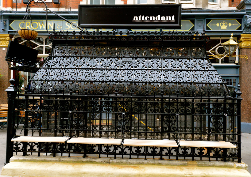 英國人 Pete Tomlinson 和 Ben Russel 買下倫敦 1890 年代維多利亞風格的廢棄男生公廁,重新改裝成窗明几淨的現代咖啡館「The Attendant」,改裝後的咖啡館,幾乎保留了原本廁所的裝潢(當然有清潔過,人家可是貨真價實通過英國衛生標準的咖啡館!),再添購一些咖啡館該有的基本配備,像是原本的辦公室則成了廚房,烘手機還留在牆上,小便池加上木板後成了吧檯,一座座便池剛好成為另類的隔間,為用餐的客人畫出私人領域,現在走進 The Attendant,等待你的可是另一種更浪漫的撲鼻香喔!