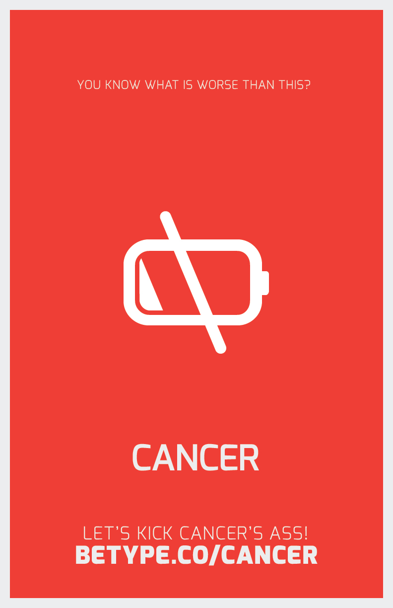 平面設計師 Byron Galan 所經營的平面設計靈感網站 Betype.co 上面刊載的許多極簡的趣味海報,主題是現代人焦慮的種種原因,設計這系列的契機相當有意義,Byron Galan 的母親 Maria Esther 目前正飽受乳癌之苦,這位平面設計師家境無法支持母親的治療費用,幾乎連房子租金或是三餐都快要無法負荷,於是拿出所學的專長,希望這些海報可以幫她募款到母親的治療費用。