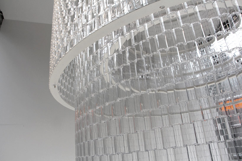 認真起來的樂高積木,也是可以很華美氣派的喔!設計師 Tobias Toestesen 用透明的樂高積木組裝成一座巨大的圓型吊燈,光線穿過積木散發出清冽高雅的氣息,雖然不像水晶會發出彩虹光效果,看起來還是氣質滿點,完全不像以往認知的「樂高積木玩具」阿!