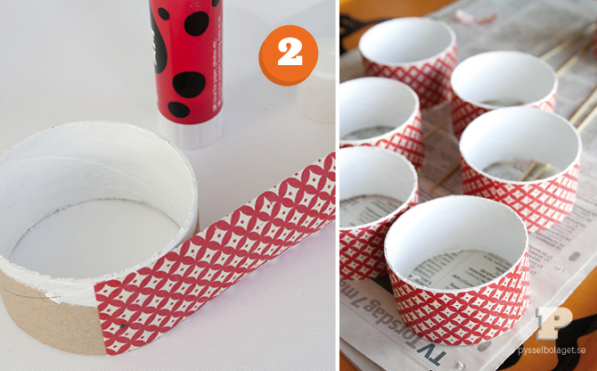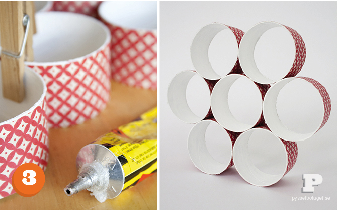 每一位小朋友平均有上百個大大小小的玩具,大小玩具散落一地好難收拾,除了通通丟進箱子裡還有什麼好主意?瑞典攝影師 Karin 和九歲女兒 Freya 一起經營的部落格 Pysselbolaget 教我們如何簡單作出玩具架。將海報捲筒或郵件硬紙筒裁成同寬的圈圈,黏上喜歡的包裝紙,再組合起來,最後擺上小玩具就完成了。簡單的花型之外也可以將圈圈組合其他圖案,只要記得黏牢就可以了,完成後的玩具架也是牆上很棒的裝飾哟!