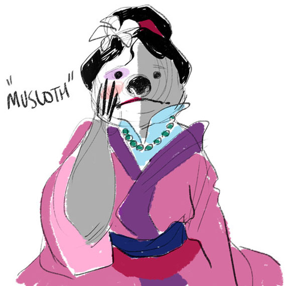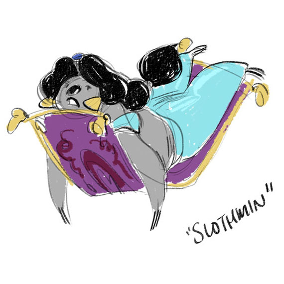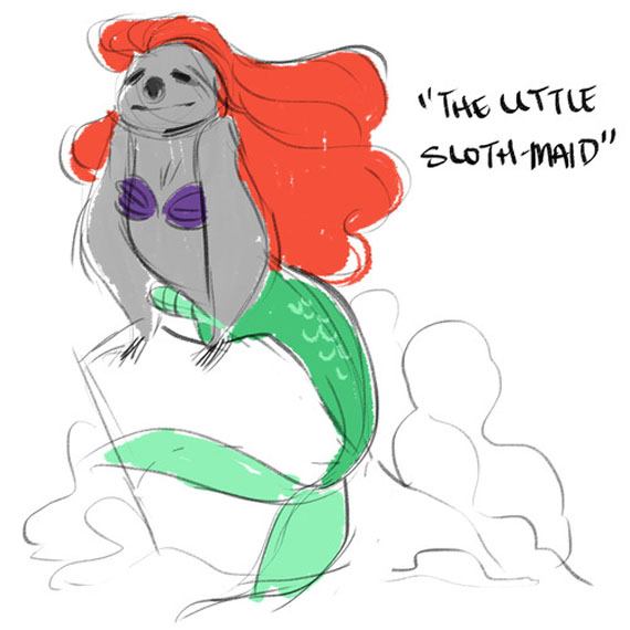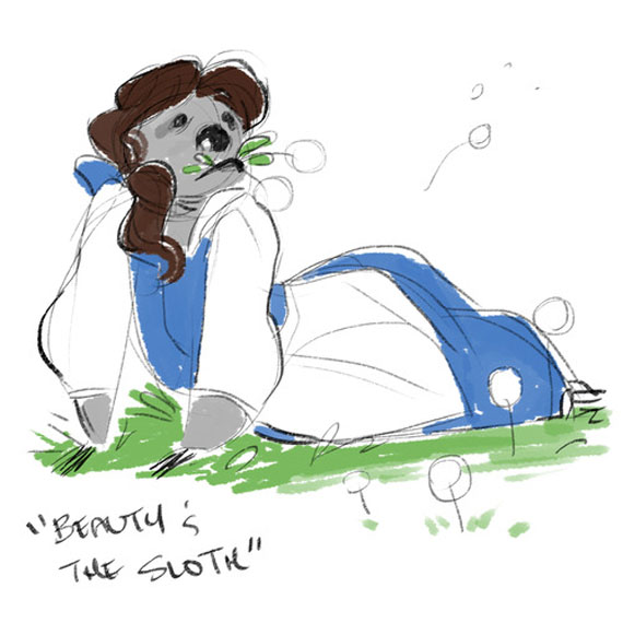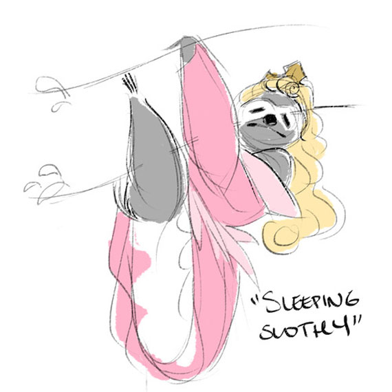 圓圓的腦袋、長長的手腳、長長的指甲,以及不知道腦子裡在想些什麼的空靈神態,各種天然呆的特質讓樹懶漸漸地與"萌"劃上等號,國外一名繪者 Phillip Light 也試圖讓它們穿上迪士尼公主們的華服,看看一屆樹懶能不能撐起公主這個尊爵不凡的嬌貴角色!