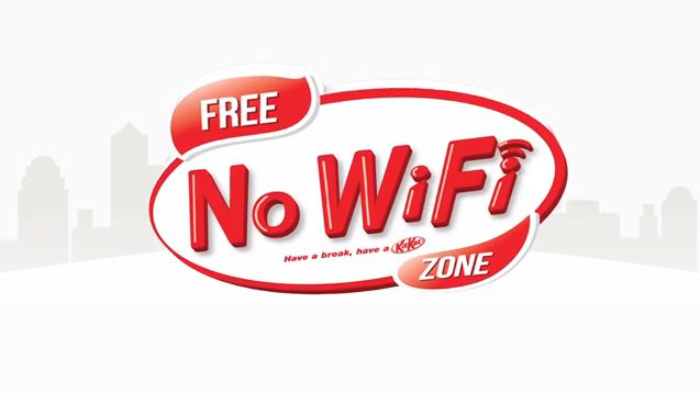 因此,當許多品牌在公眾場所設置免費WIFI供消費者使用,希望消費者連線時能夠看見品牌名稱時,Kit-Kat 卻反向操作。Kit-Kat在阿姆斯特丹的許多地點,設置了「無WiFi」區,這個區域裡安裝了WiFi干擾器,所有的WiFi訊號在這小小的五呎範圍中喪失功能。所有進入此區的人們,可以非常純粹的坐下來休息,看份報紙或是純粹的聊天。