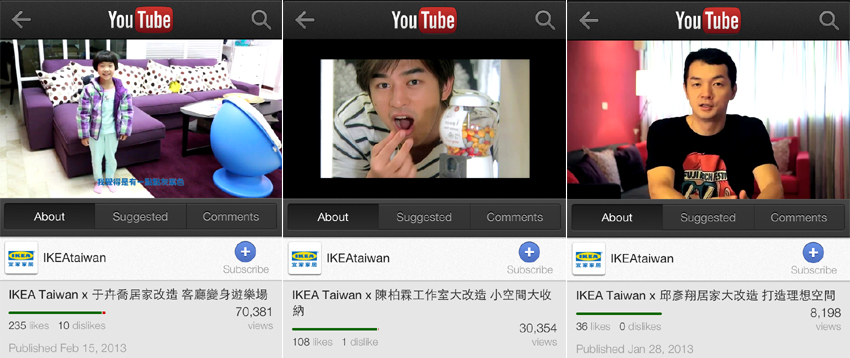 繼續往下拉還有「名人改造」專題,像之前有大仁哥 陳柏霖、全聯先生 邱彥翔的居家工作室專訪,現在是網路超萌教主 喬喬 的居家改造,再點進去可直接進入 Youtube 的 IKEA 頻道喔。