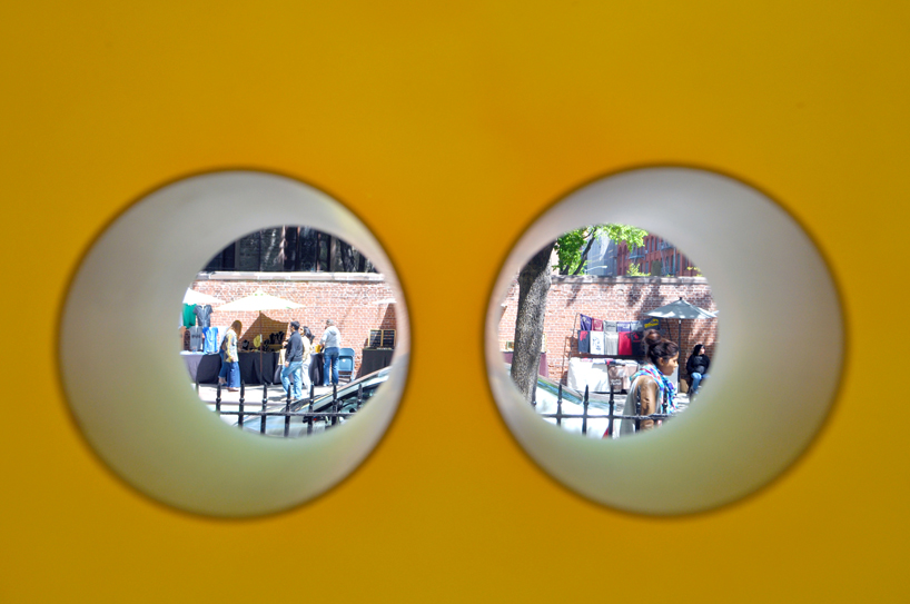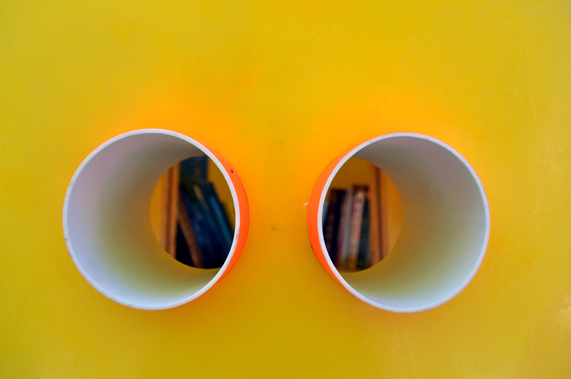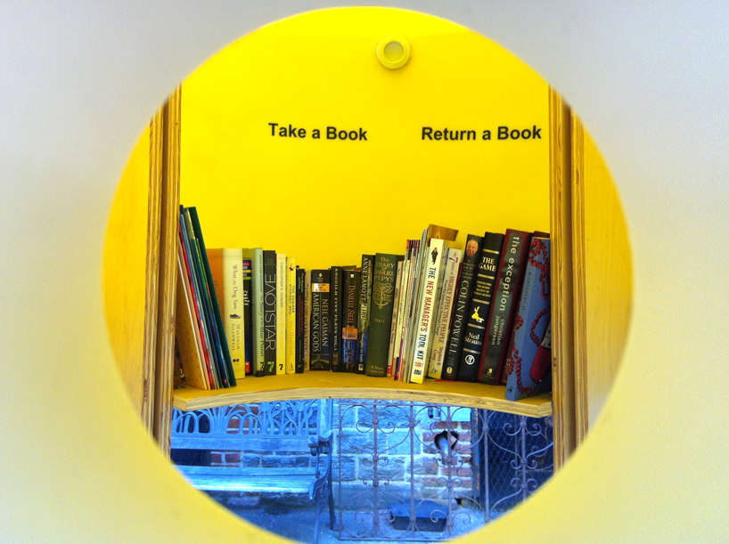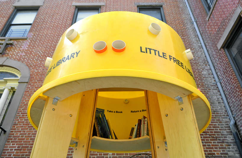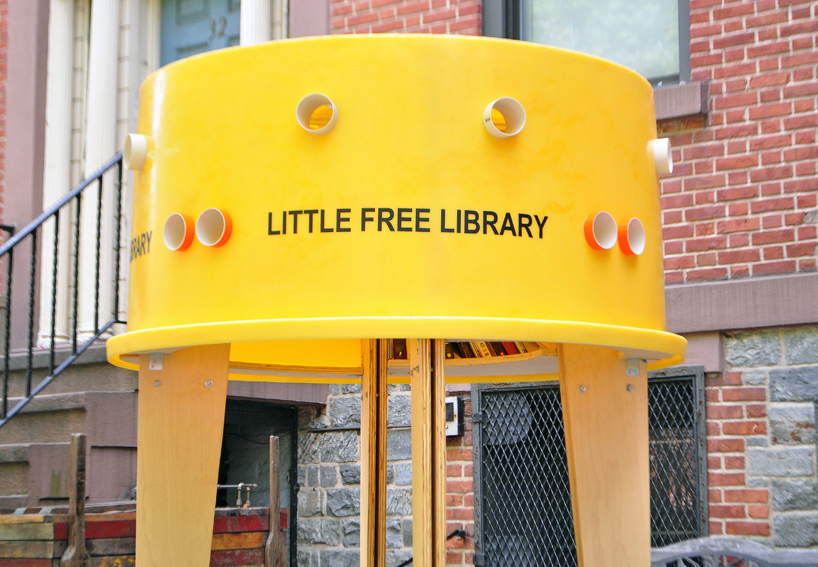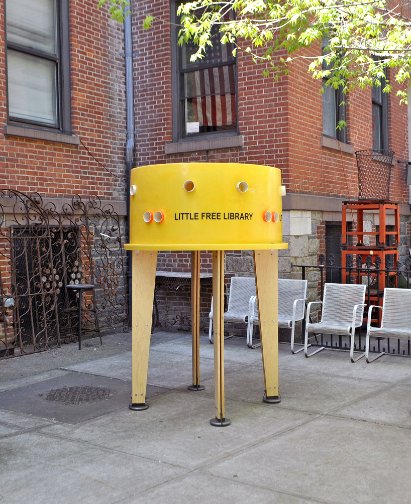 紐約建築同盟 (Architectural League of New York)最近和國際筆會世界之聲文學節 (Pen World Voices Festival)合作,在紐約街頭設置了免費的圖書館Stereotank,Stereotank 由委內瑞拉建築師 Marcelo Ertorteguy 和 Sara Valente 設計,將黃色的塑膠桶倒過來裝置在木架上,桶子上還開了洞,路過的民眾如果從洞中發現自己有興趣的書,就可以鑽進圖書館內,暫時放下手邊的事情,細細閱讀一番,或是一旁的書友交換好書。