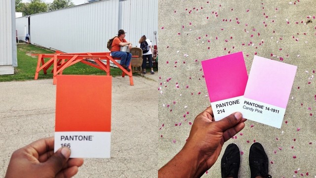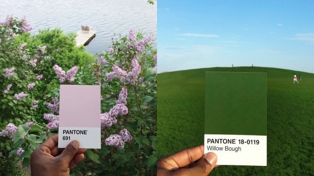 一位來自芝加哥的攝影師保羅‧渥太維(Paul Octavious)將這些色卡用來標識生活中所見的顏色,讓它們不僅僅只是設計用色卡而已。在他自己的 instagram 中,有一系列命名為「The Pantone Project」(生活中的色卡)的照片。在這些相片中,他都會手持一張色卡來比照他所看見的事物,顏色就和手中色卡一模一樣。像他拿了這張色卡1797號來對照牆上的西瓜塗鴉,而比照下方圖片中的草原顏色,則用了色卡18-0119號,別名Willow Bough(楊柳綠)的色卡。(雖然小編覺得整張圖看起來比較像Windows XP的桌布,應該叫「XP綠」會比較適合吧XD)