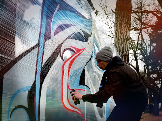 Astro 和 Kanos 利用透明玻璃紙(cellophane)當做畫布,一來不受地域限制,在哪兒畫或者需要多大面積都不成問題,二來拆卸容易,如果真的有人來抗議,頂多收一收走人,乾淨溜溜連張紙屑都不留,自從 2009 年開始他們就一起創作,並稱這樣的創作方式為 Cellograph,在城市中到處留下鮮艷美麗的塗鴉,不過唯一可惜的是,當這面牆一收,作品也就跟著沒了,或許能當成讓兩人不停創作的動力吧!