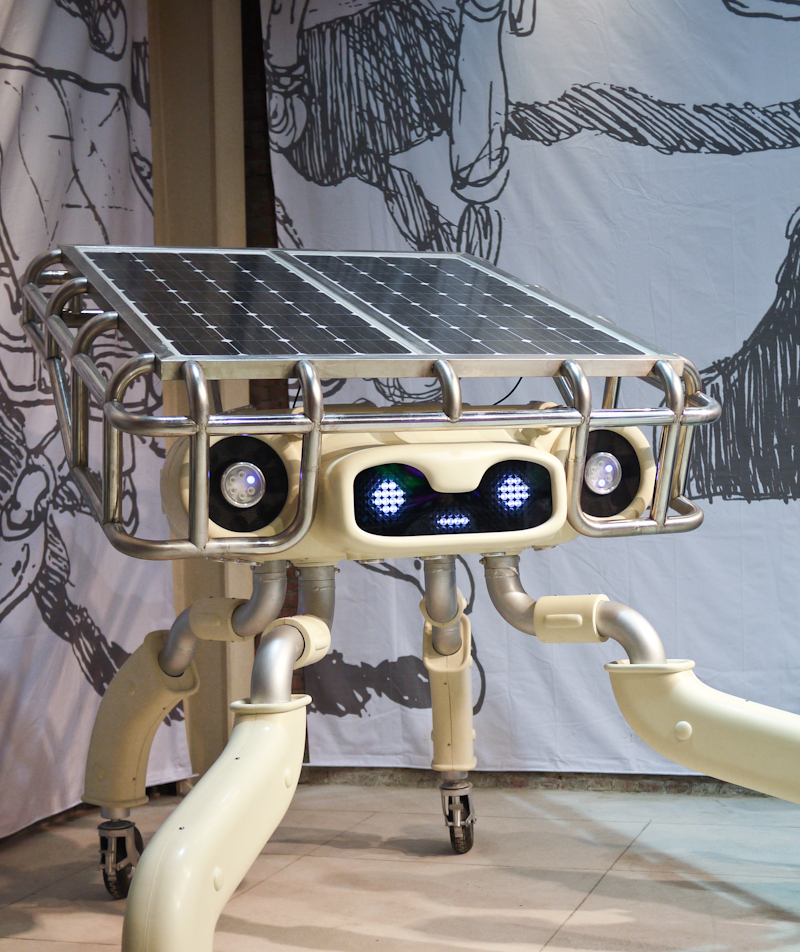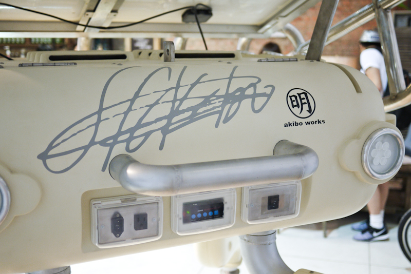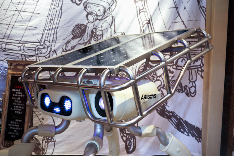 近距離觀察 Akiboys 可以在它身上看到不少有趣的東西,包括媲美迪斯可光球的眾 LED 們,AKIBOYS編碼印刷、頭頂一大片太陽能板,以及背後 AKIBO 的率性簽名~~