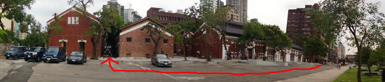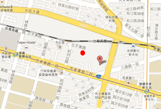 TIPS1:根據官方說法,華山在於捷運忠孝新生附近,不過如果說到紅磚六合院,實際走起來反而是捷運善導寺站比較近了,位在北平東路與杭州北路之間(也就是圖中紅點處),從這邊走會快很多!