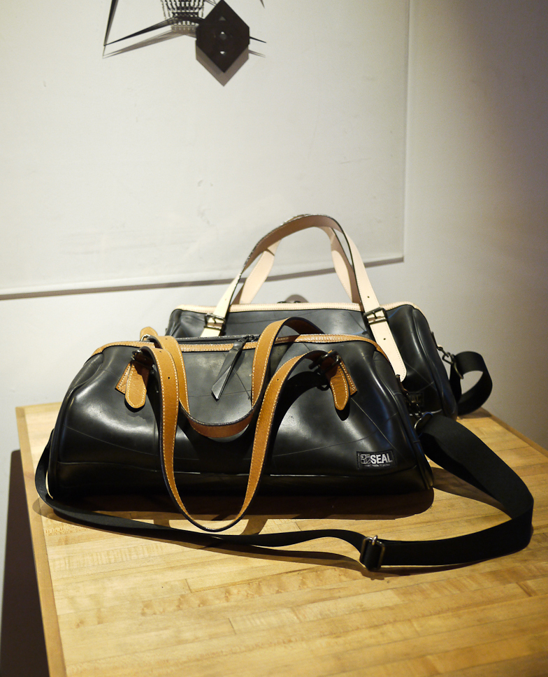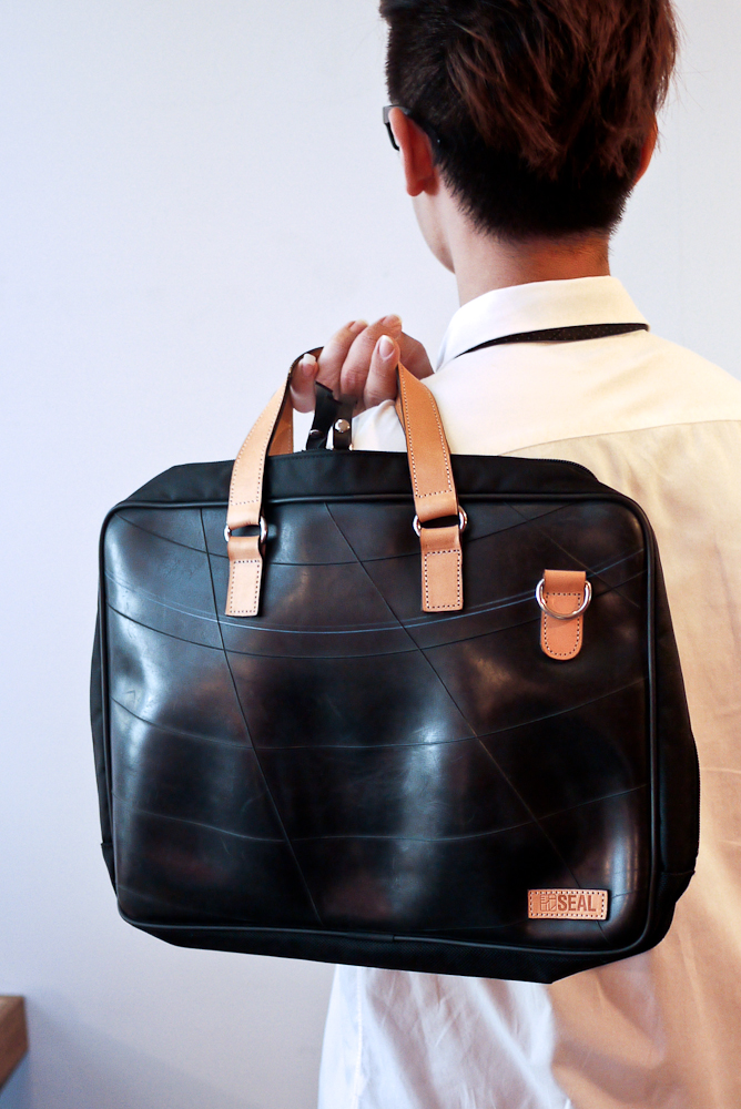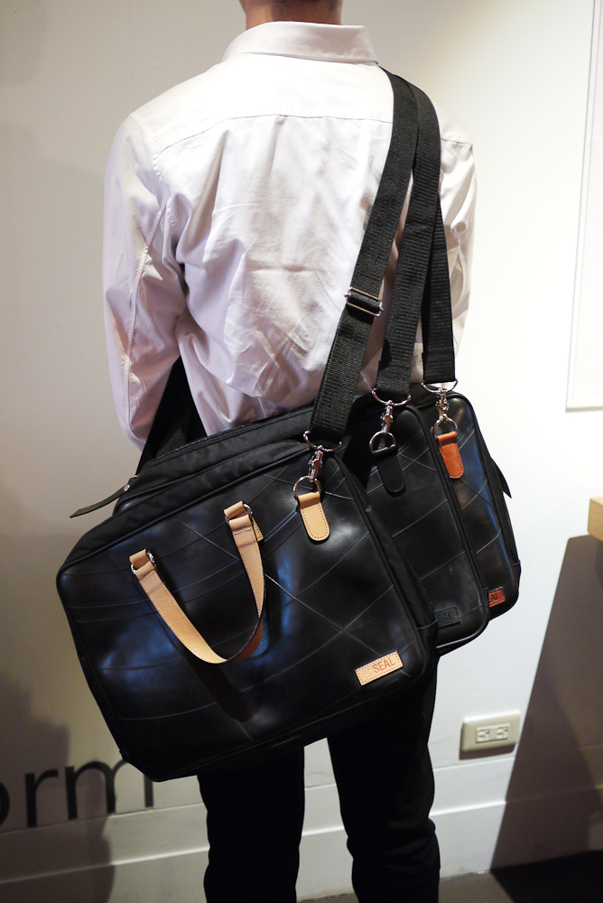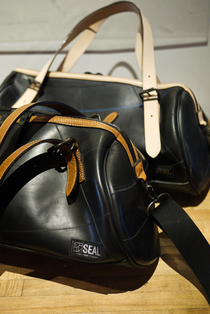 SEAL 包採用的是大卡車輪胎的內胎,當輪胎表面磨損到一定程度、為了安全考量必須更換時,汰換下來的舊輪胎們會先經過篩選、挑出符合製作需求的輪胎皮後,再進行清潔程序。每一只 SEAL 的包包表面都沒有任何裝飾加工,僅靠內胎原本的胎紋撐場面,擔心這樣會不會很無趣嗎?不會,因為每個包絕不會出現同樣的紋路,如果運氣好一點的,還可能會買到印有編號的包款呢!不過當然相當稀有,畢竟不是每隻輪胎出廠時都有印編號。