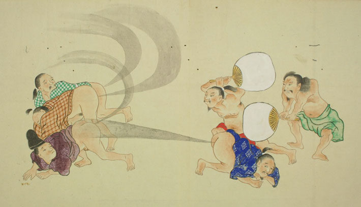 古代人的興趣似乎主要來自大自然,除了賞花、登山之外,意想不到的是,竟然也有以「放屁」為主的遊戲?經營日本文化觀察部落格「Naruhodo なるほど」的Steffen Remvik,是挪威奧斯陸大學博士。有一天,他閱讀「A History of Japan: From stone age to superpower」這本書時,「屁合戦」這麼詞彙吸引了他的目光。他上網搜尋,發現了《屁合戦絵巻》的存在。這卷現收於早稻田大學的圖畫,竟是在描繪江戶時代日本人們,以放屁做為競賽的遊玩的樣貌。