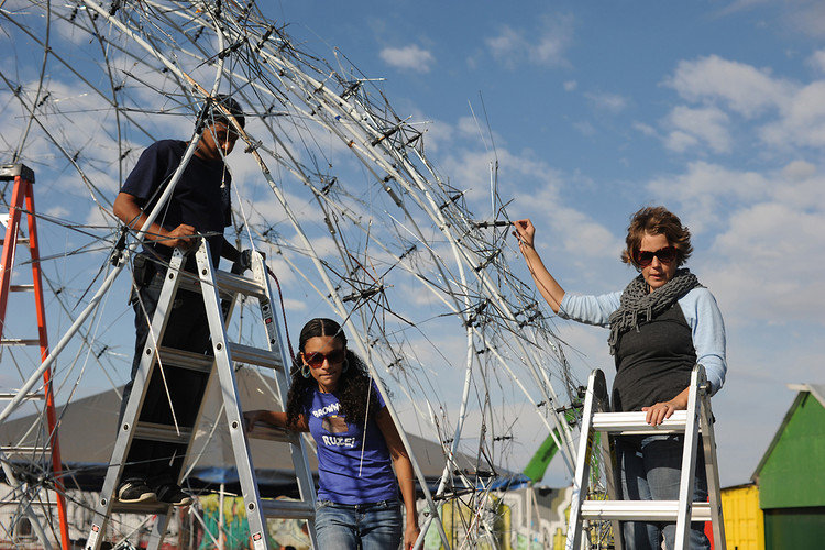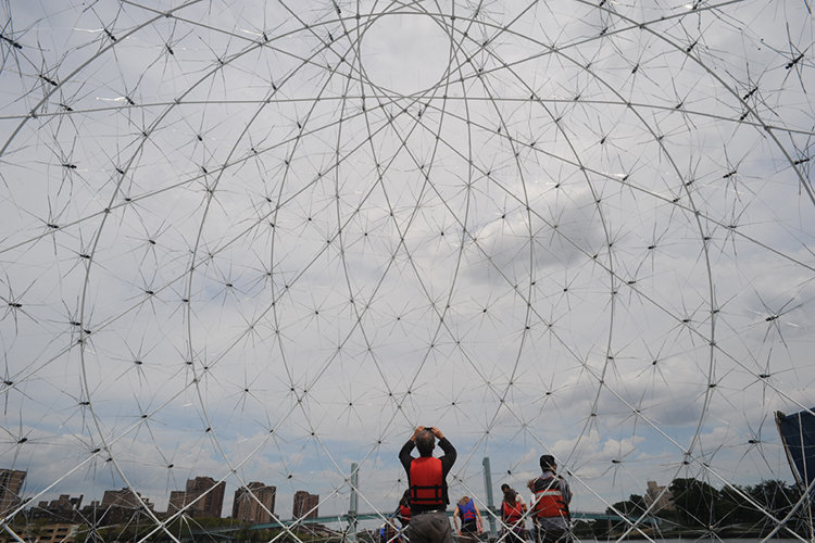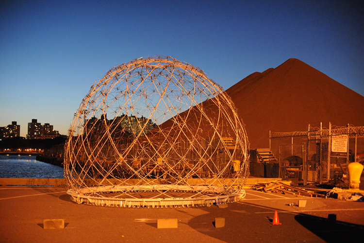 在哪裡跌倒,就要從哪裡爬起來,夫妻檔設計師Amanda Schachter和Alexander Levi所組成的 SLO Architecture,去年三月在 Kickstarter募得資金,完成的水上裝置藝術 Harvest Dome 1.0,下水後卻不幸被水流沖到 Rikers Island,被當地的獄警當成「不明飄浮物體」處理掉。不屈不撓的他們,決定再次挑戰 Kickstarter,提出 Harvest Dome 2.0 計畫。