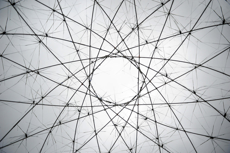 從內往外看可以看到交錯而美麗的弧形,對於一般人來說,要處理壞掉的傘常常是一種麻煩,誰想得到原來也可以有這樣的風貌!