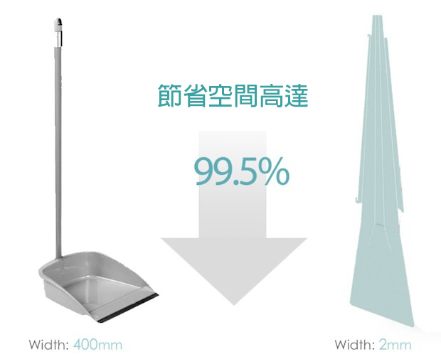市面上也不是沒有時尚款的畚箕,但是再高貴的畚箕......本質上還是畚箕!而且掃具平常不用的時候容易成為潛在居家危險,經過常常會不小心絆到,輕則自認倒楣摸摸鼻子把踢倒的掃具歸位,衰一點的話可能會連人帶工具雙雙跌落在地,可摺式畚斗 Flat Dustpan 則完全不會有這種困擾,一體成型的設計只要簡單幾個動作就可以組裝/還原,只要用完後乖乖地收納好,你這輩子想再踢到掃帚應該不大可能了(誇張)XDD