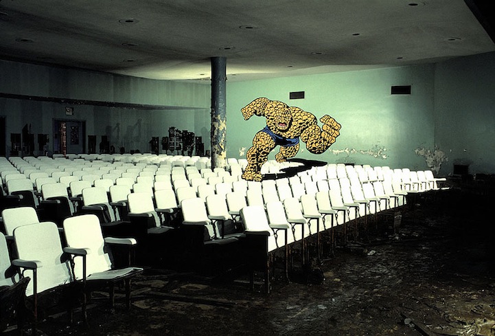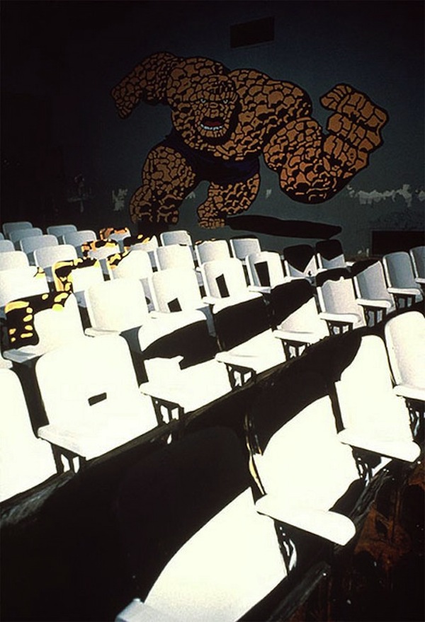 近看是單純的石頭人的壁畫,周圍的椅背上也有些許延伸色塊,整個拉遠來看才會感受到作品張力,石頭人就像要衝出牆面奔過來給你個大拐子似的,看起來相當過癮!