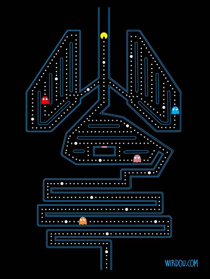Pablo Bustos 創作的題材大多是人們早已熟悉的,例如電影、電玩、樂高等,有時會替角色們加上設計對白,有些則單純用動作表達情境,例如上圖的星際大戰,原本是正義方的天行者一干人等經過轉化後變成集體欺負黑武士的壞孩子,更妙的是原本高壯的秋巴卡竟然變成搖著尾巴的毛小狗,有趣的故事加上通俗畫風讓 Pablo Bustos 順利地從平面插畫轉為 T 恤設計,或許不是每個人都能有同樣的際遇,但不可否認的是,他的作品確實都能打到人們的笑點喔!