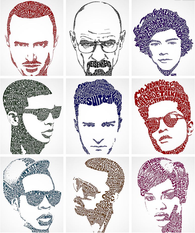 Jay-Z、賈斯汀、蕾哈娜,這些國外超級知名的藝人臉龐,早已被藝術家們用各種奇妙的素材當成臨摹的對象了,以字體創作的藝術家 Sean Williams 則想到用該歌手的唱過的歌名拼奏成頭像,這樣看可能不夠有感,換成小尺寸的縮圖就會感受到它的威力了!