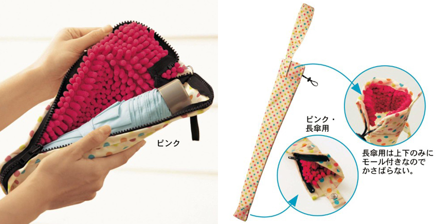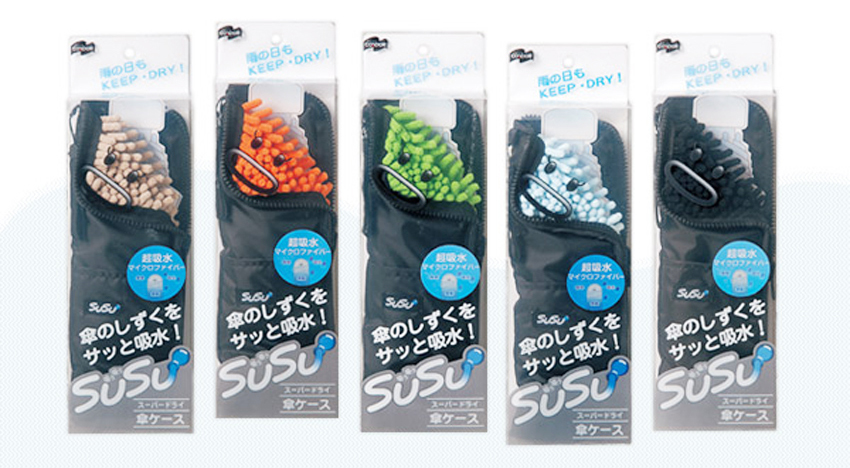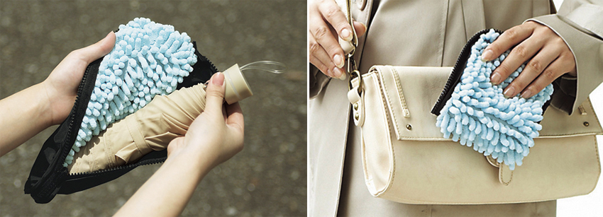 曾經看過來自韓國 貼心的集水摺疊傘 本身握柄就有集水功能,搭配摺疊掛勾,即使公司傘架客滿了也不用擔心,很適合坐辦公室的上班族。這次我們向大家推薦日本 SUSU 設計的超吸水傘套,外觀長得像普通傘套,在內裡加上了 SUSU 研發的超吸水纖維,每一段粗短纖維由更細緻的超細纖維編織而成,由超細纖維增大表面積,能產生快速的毛細作用,讓水份不論是吸收或蒸發都比一般纖維來的更迅速,雨傘使用後放入這個快乾傘套中,不再怕弄溼文件或包包,而且一翻面還能拿來當做超吸水抹布使用。習慣拿長傘的人也別擔心,同時也有長傘專用傘套,對於下雨天也要出外跑客戶的業務們,這可是個讓自己告別雨天狼狽的好幫手呀!