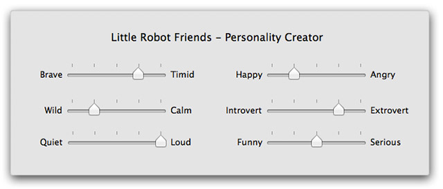 來自多倫多 Aesthetec Studio 公司所製造的「機器人小朋友」應該會是許多單身男女家中的幸福(欸?)良伴。為什麼呢?因為造型可愛的機器人小朋友們功能相當齊全,他們會聽你說話、感光(開燈關燈他們都知道),也會偵測觸碰感應,還能透過紅外線跟你溝通!底座的木板可是大有來頭,因為每個機器人小朋友的「記憶大腦」都配有一個8位元 32K的微控制器,讓它們可以感應主人的行為,或者儲存記憶。如果你覺得這樣還是沒有辦法滿足你需要有人關心的寂寞小心靈的話,這些迷你機器人小朋友也可以讓你帶著跑。你可以把它們接在電腦上,來編寫裡面的程式碼,而這些機器人小朋友就這樣培養出自己的個性,他們會發展出一套針對你的行為或情緒所產生的認知系統,達到你想要的反應 A_A~他們也會用同樣的方式,跟其他機器人小朋友互動,感覺就像夢工場系列的機器人版一樣XD