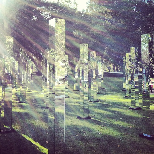公共藝術還是要可以互動的比較親切有趣,紐西蘭建築團隊 Out of the Dark 在澳洲雪梨的海德公園(Hyde Park)搭造了一座露天的鏡子迷宮,81個鏡柱立在草原上,走在虛虛實實的影像之間,一個不小心還會被鏡子的反射光給閃到眼睛,比起遊樂園中的鏡屋多了點樂趣,在裡頭玩捉迷藏的話應該難度會大大增加,可以玩到嗨翻過來喔~