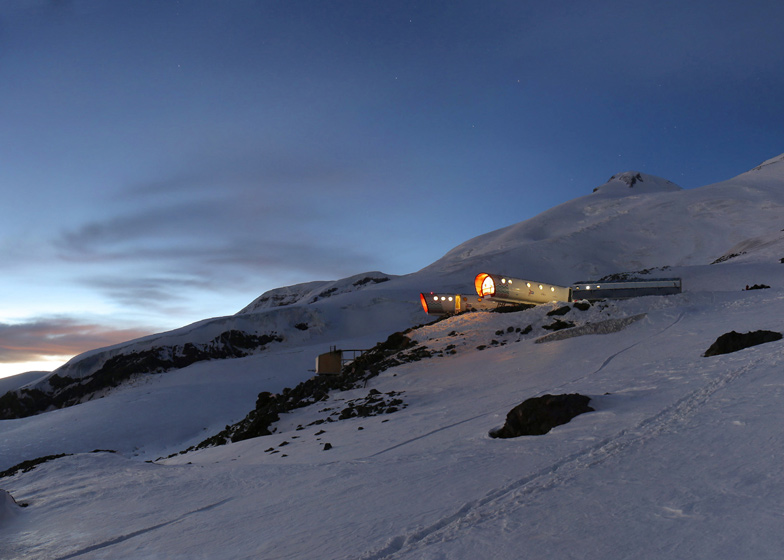Mount Elbrus厄爾布魯士山是歐洲最高峰,光是爬上去就不是容易的事了,居然還有旅館蓋在上面?由義大利建築團隊建造的旅館 LEAPrus 3912 就是這樣的奇葩,裡頭不只可容納 49 位登山客居住,還有交誼廳、餐廳廁所衛浴等設備,不只讓辛苦登山的人可以好好休養生息一番,也讓 Mount Elbrus 除了美景之外又多了點新鮮事兒!