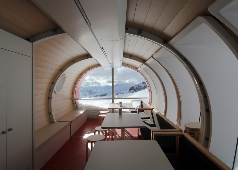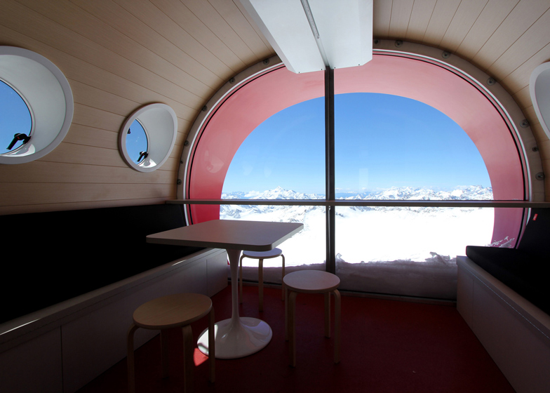能在這樣的環境蓋旅館,背後的團隊可不能太馬虎,來自義大利建築團隊 LEAPfactory 本身擅長建造適合在於極限環境生存的建築,約莫在2011年底時就曾在阿爾卑斯山上蓋過一個小旅館,當時特地將它掛在山邊,看起來相當相當危險,感覺要住進去之前得先簽個切結書、根本一點也無法讓人放鬆!相較之下今年的 LEAPrus 3912 就顯得很友善,只保留了一點點懸空,其餘大致都還在平順的地區。