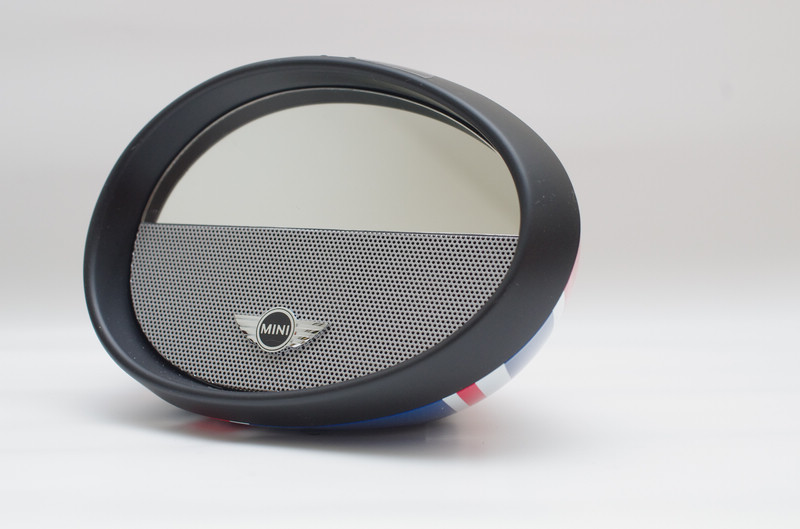 無論是舊版 Mini 或是現代的新 Mini ,大而平坦的車頂與後照鏡也常常用於彩繪圖案,尤其將象徵英國的米字旗繪製上身,更是許多人印象最深刻的彩繪。這次要介紹的 iUi Mirror Boombox 正是採用經典的英國米字旗彩繪的圖樣,同時把經典設計與象徵英國的精神融合在一起。