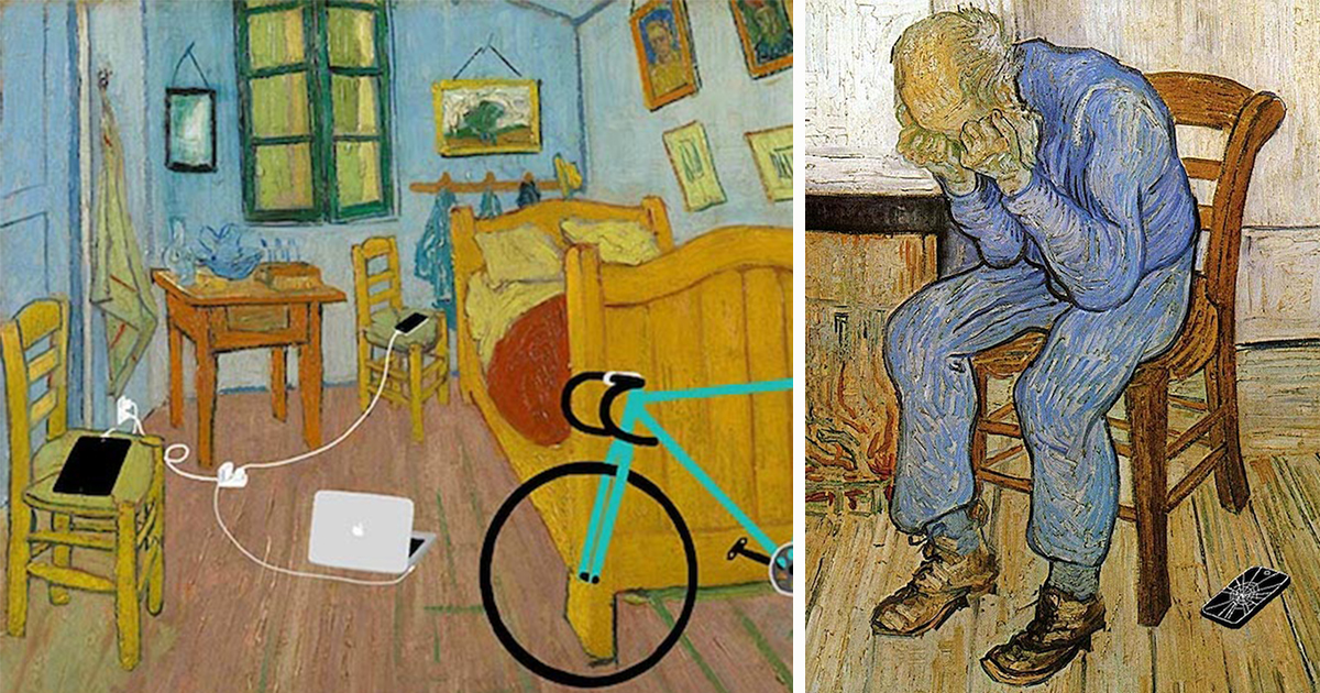 這一系列名為「Art X Smart」的經典名畫改造計畫把現代人最常用的智慧型手機與平板電腦放到距今數十年、甚至數百年前的名畫作品中。像是梵谷筆下房間裡出現時下流行3C產品與單速車、塞尚繪製的卡牌玩家手裡也變成了智慧型手機,雷諾瓦所畫的少女肖像也拿起手機聊天,不管是再經典、再古老的畫作,加上了科技商品,就立刻成了現代人的生活寫照啊~