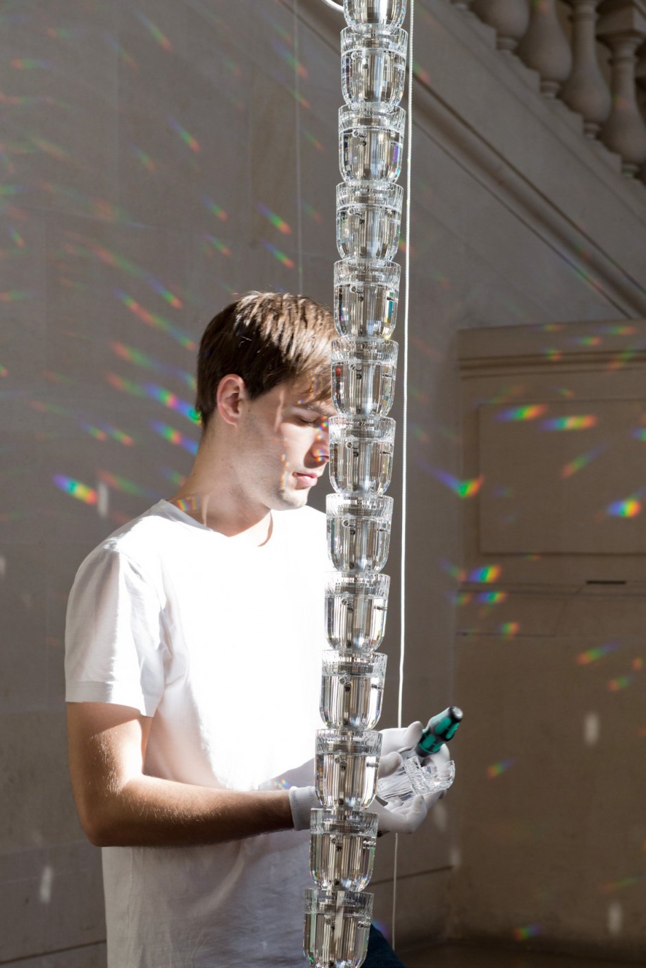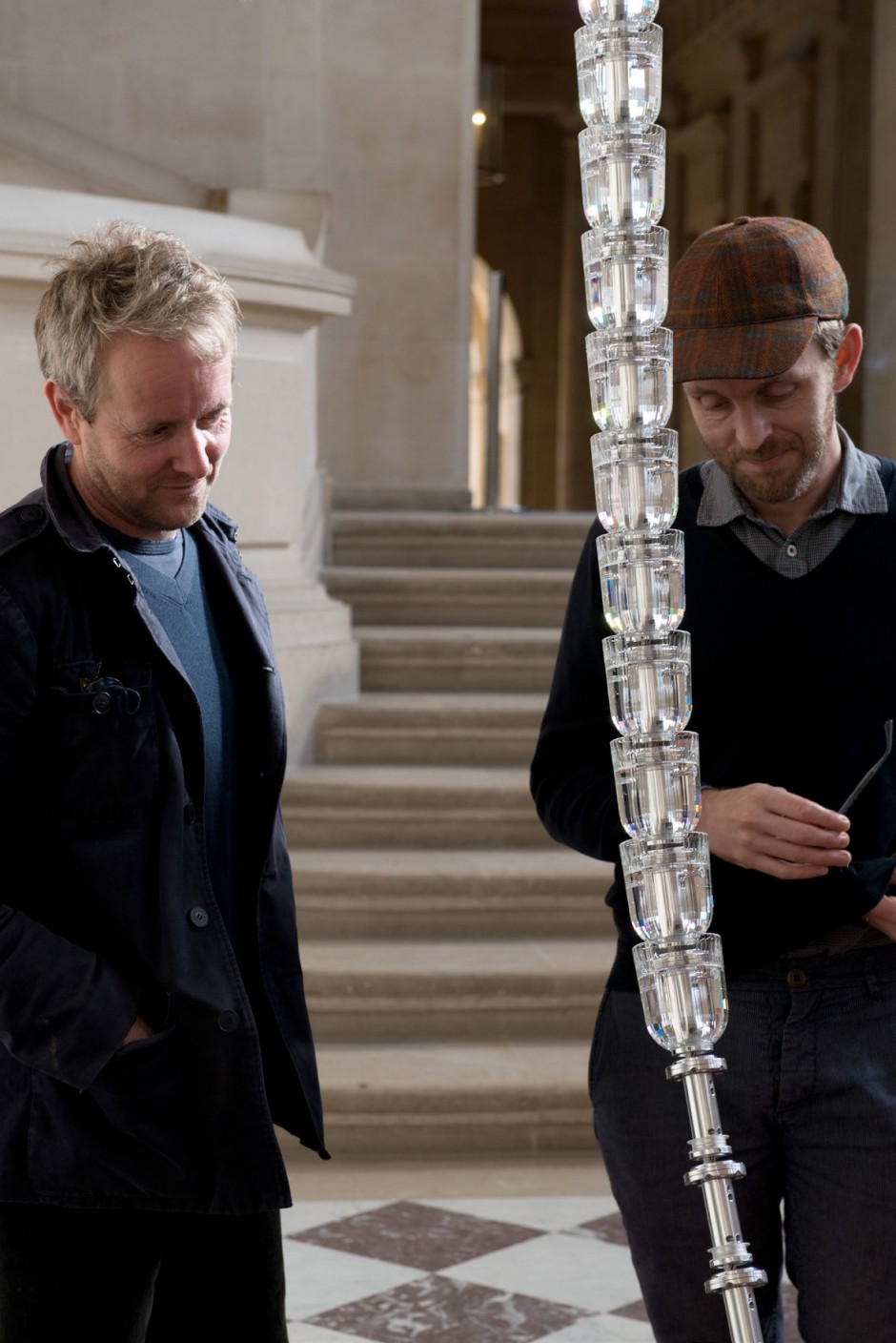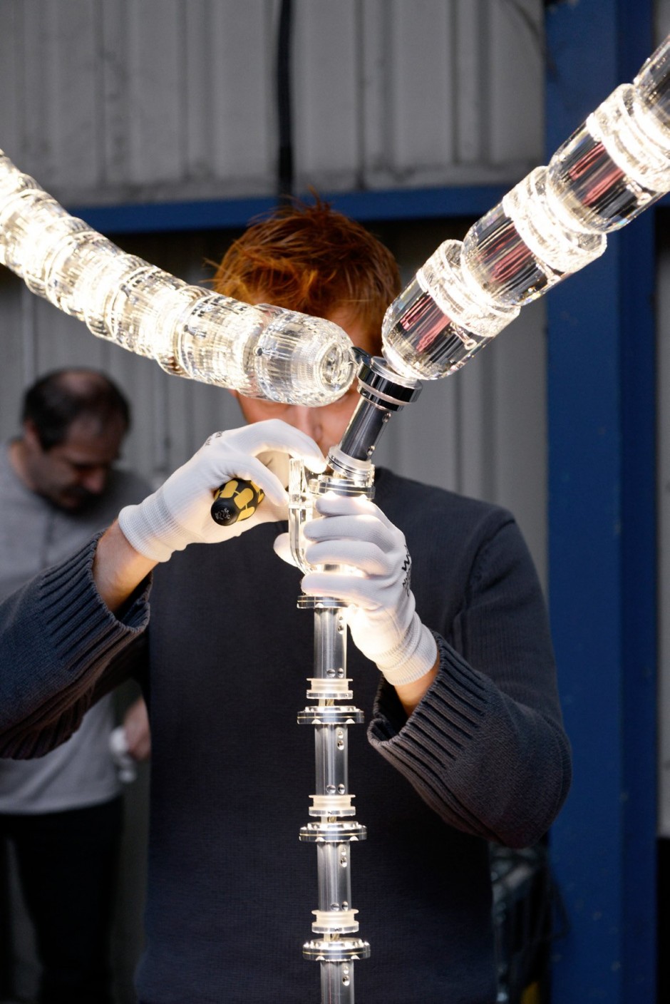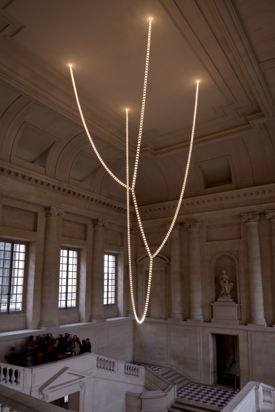 水晶永遠是最能搭襯貴族精緻氣息的材質之一,法國設計師 Ronan 和 Erwan Bouroullec 在凡爾賽宮的大廳天花板垂吊一串水晶燈,用施華洛世奇水晶杯一個個人工串起的燈具就像珍珠項鍊般光燦奪目,讓本來就以奢華為名的凡爾賽宮更顯高調。