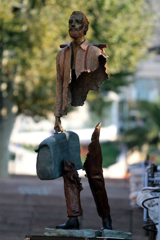 法國馬賽在今年被選為 2013歐洲文化之都(European Capital of Culture 2013),舉辦了許多慶祝活動,而藝術家 Bruno Catalano 就以「旅行」為靈感在馬賽港設置了十個雕像,每尊雕像手上都拎著一只行李箱,除了代表旅行之外,也加入了彷彿在尋找些什麼的意味,當然我們不可能在城市的某個角落找到它們遺失的軀幹(驚),頂多只能從缺口處像這樣和對面的陌生人互拋媚眼,不過它確實點出現代人心中那塊怎麼也填不滿的空虛感,