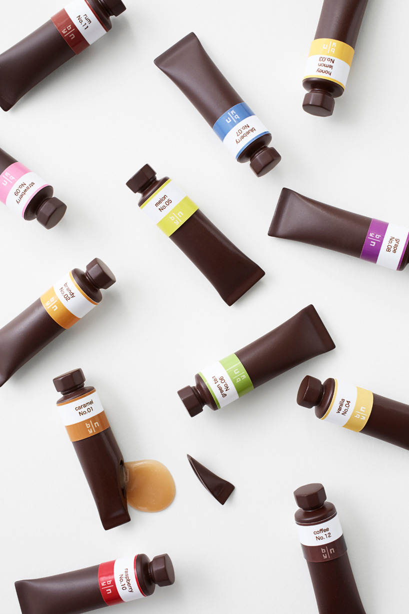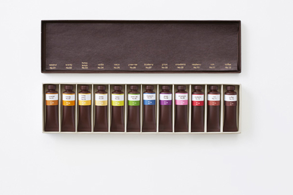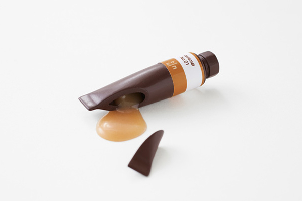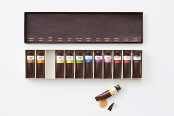 飽滿的金屬光澤,未拆封的嶄新氣息,剛買來的新顏料總是能讓人心情愉悅,而日本 nendo 設計工作室則把這種愉悅感轉移到巧克力上,把甜滋滋的巧克力做成顏料條,原本五顏六色的顏料就換成各種甜蜜蜜的糖漿,拿來送人或自己享用都相當適合呢!